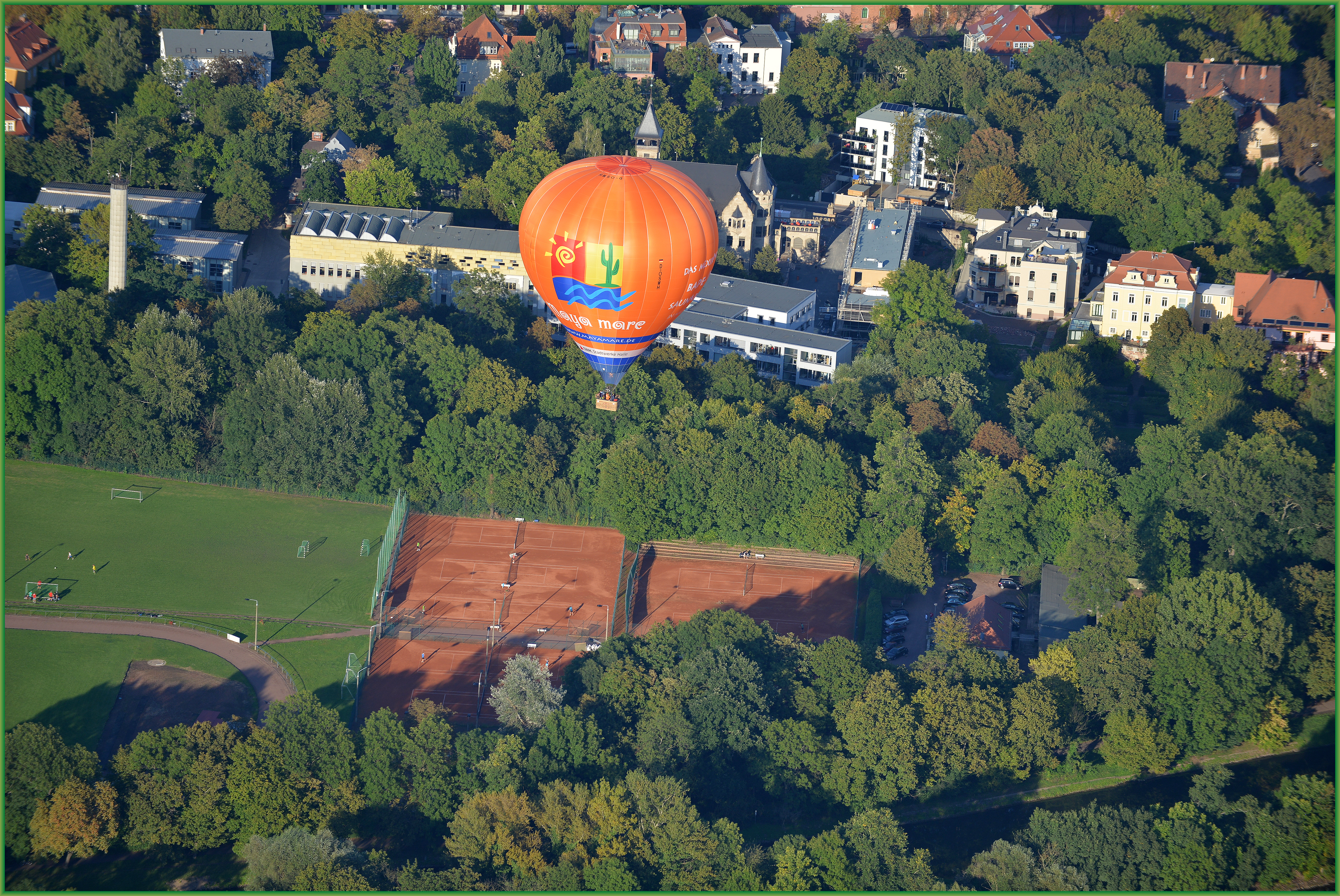 Halle von oben 27. August 2014Klaus Heinrich Hinterlasse einen Kommentar Endlich wieder Sonne, heute Abend beim Fotoflug über Halle an der Saale aus ca. 600 m Höhe endeckt : Der Neue Heißluftballon vom Maja Mare / Stadtwerke Halle beim Aufsteigen vom Startpunkt auf Peißnitz, Nähe der alten Eissporthalle Teilen mit: Klicke, um auf X zu teilen (Wird in neuem Fenster geöffnet) X Klick, um auf Facebook zu teilen (Wird in neuem Fenster geöffnet) Facebook Klick, um auf Pinterest zu teilen (Wird in neuem Fenster geöffnet) Pinterest Klicken, um einem Freund einen Link per E-Mail zu senden (Wird in neuem Fenster geöffnet) E-Mail Gefällt mir Wird geladen …