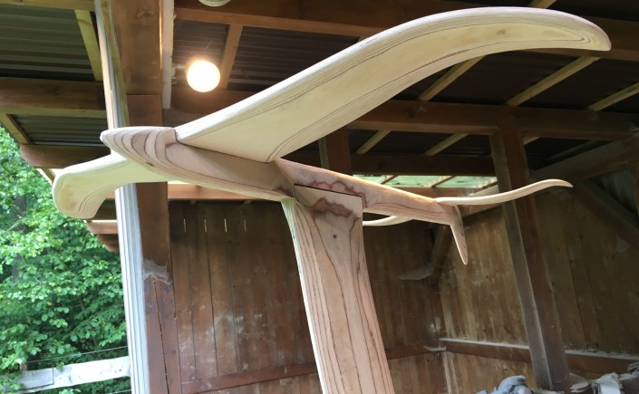 Aber es ist immer noch ne‘ Stange Geld die man(n) dafür ausgeben muss. Dank Google habe ich mir weltumspannend die Erfahrungen Hinweise und Bilder zu den nun fest beschlossenen Eigenbau erlesen. Das schwierigste dabei war eigentlich die Selektion welche Formen, Längen, Dimensionen usw. nun die richtigen sein sollen. Schlussendlich habe ich aus dem „Bauchgefühl“ die mir am besten gefallenden Formen der Flügel, des Mastes und der Fuselage genommen, die dann per Q -CAD konstruiert und mit meiner neuen großen CNC Fräse ausgefräst.