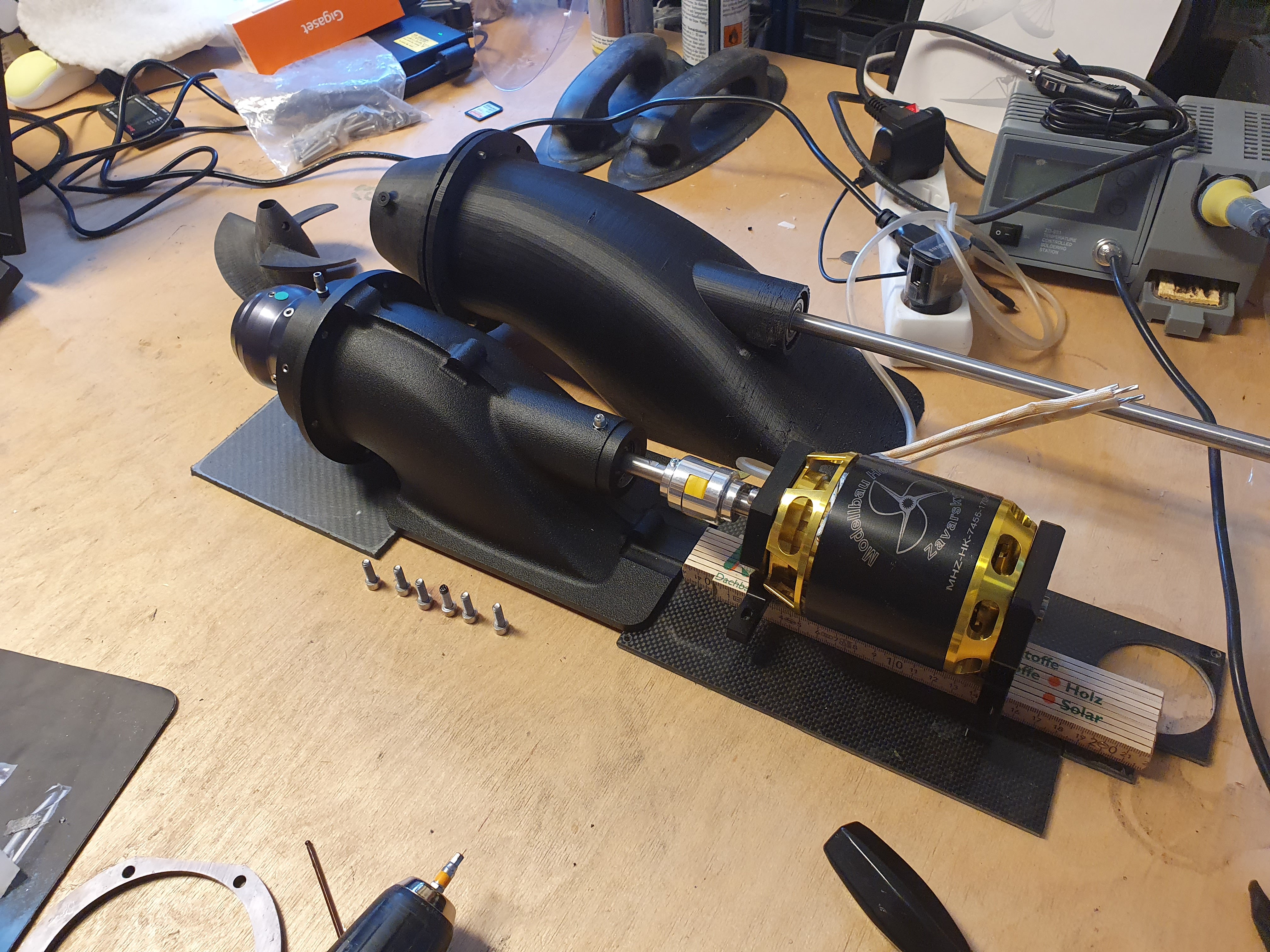 jetzt wird ein Gehäuse für Motor, dem Impeller und dem ESC gebaut (der 3 D gedruckte Impeller ist eine seperate Baustelle 😉